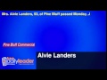 Mrs. Alvie Landers, 93, of Pine Bluff passed Monday, January 12, 2015. Funeral Arrangements will be announced by Brown Funeral Home of Pine Bluff.